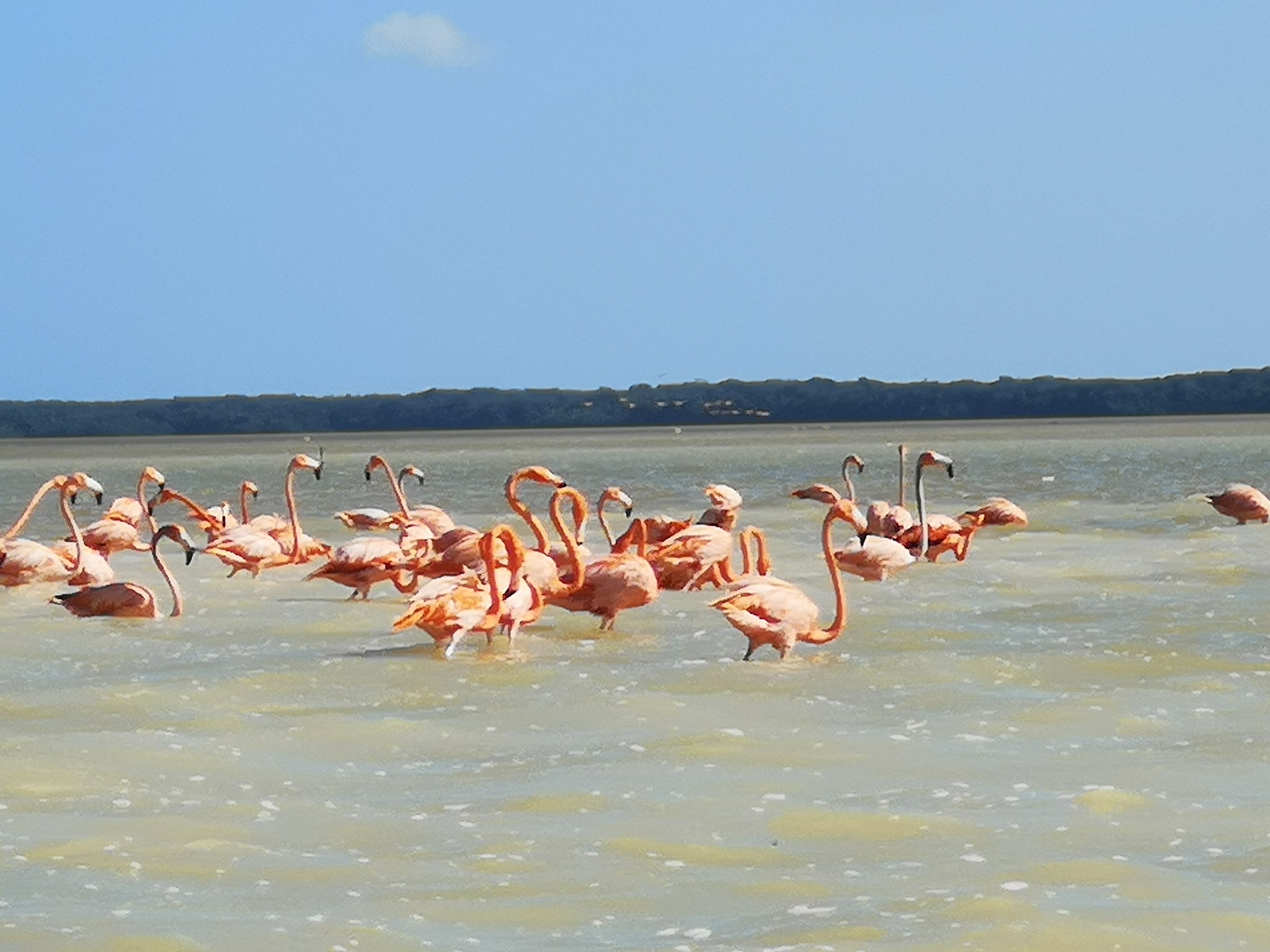 LAS COLORADAS Também veremos os lagos rosados de Las Coloradas. O sal nesta região é um grande tesouro. Os antigos Maias usaram essa área para produzir sal muito valioso, há milhares de anos. Como fizeram eles isso? A água salgada dos manguezais próximos derramava-se em planícies duras e planas, criando lagoas rasas. O sol evapora lentamente a água, deixando sal marinho fresco. O sal era extremamente importante para os Maias, tanto para as necessidades nutricionais quanto para a preservação dos alimentos. Era extraído na parte norte de Yucatán e depois transportado de barco para outras partes do império Maia. Por que a água é rosa? Você aprenderá isso e não apenas em nossa viagem. Relaxe na praia do Golfo do México e retorne ao hotel.
